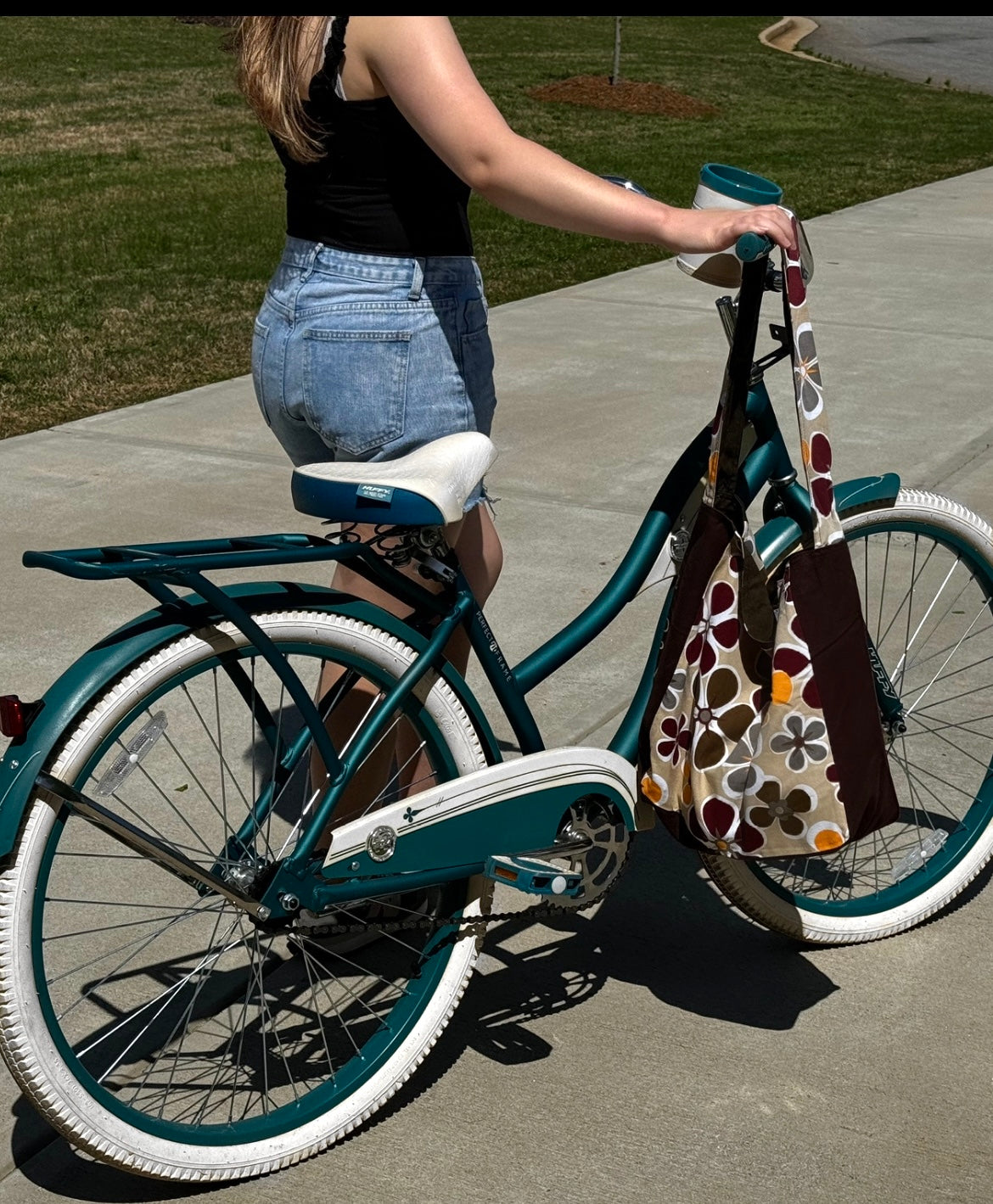 We enjoy discovering new ways for our OPMAD bags, and we've found they're great for bike rides. Simply sling the bag onto the handlebars, place it in your basket, or carry it over your shoulder for easy travel.